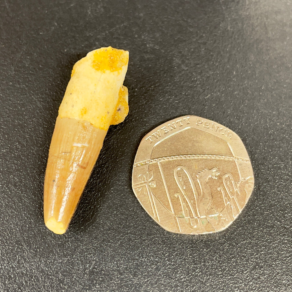 Our Spinosaurus teeth are from morocco and are between 3-5cm in size. They are from the Cretaceous Period, roughly 112-97 million years old.